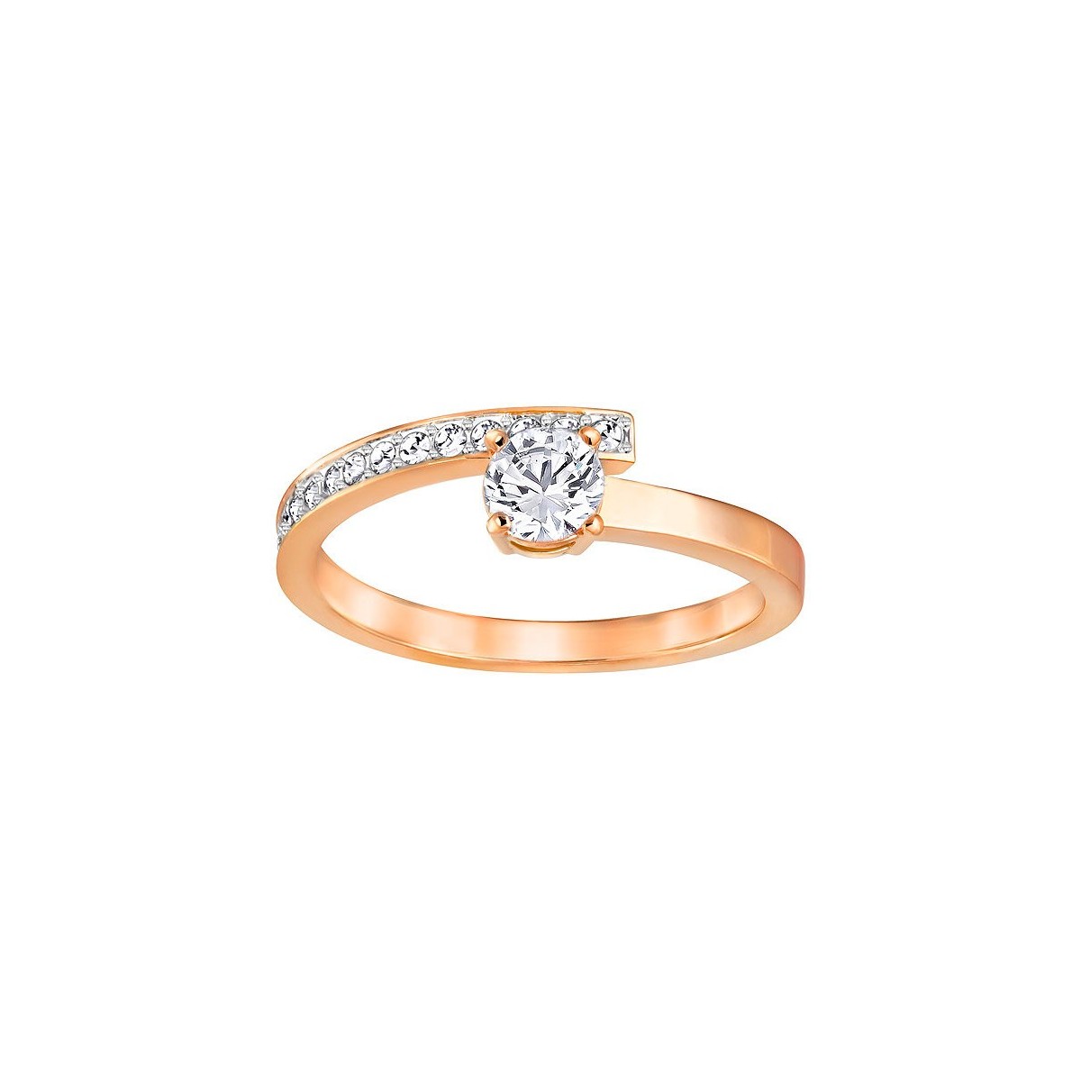 Anello veretta solitario placcato oro rosa con cristalli Swarovski bianchi. Misura 52