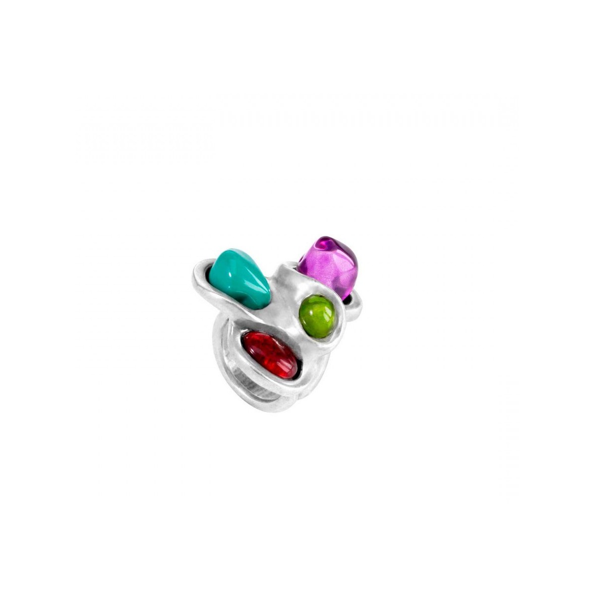Anello donna in metallo rivestito argento e pietre in resina di vari colori