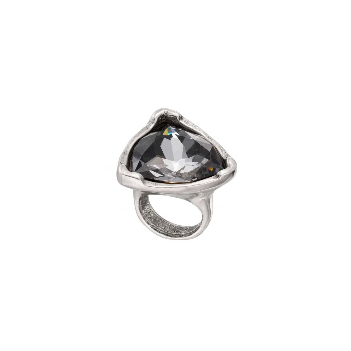 Anello donna in metallo rivestito argento e pietra in cristallo Swarovski color grigio/nero misura L realizzato a mano made in Spagna