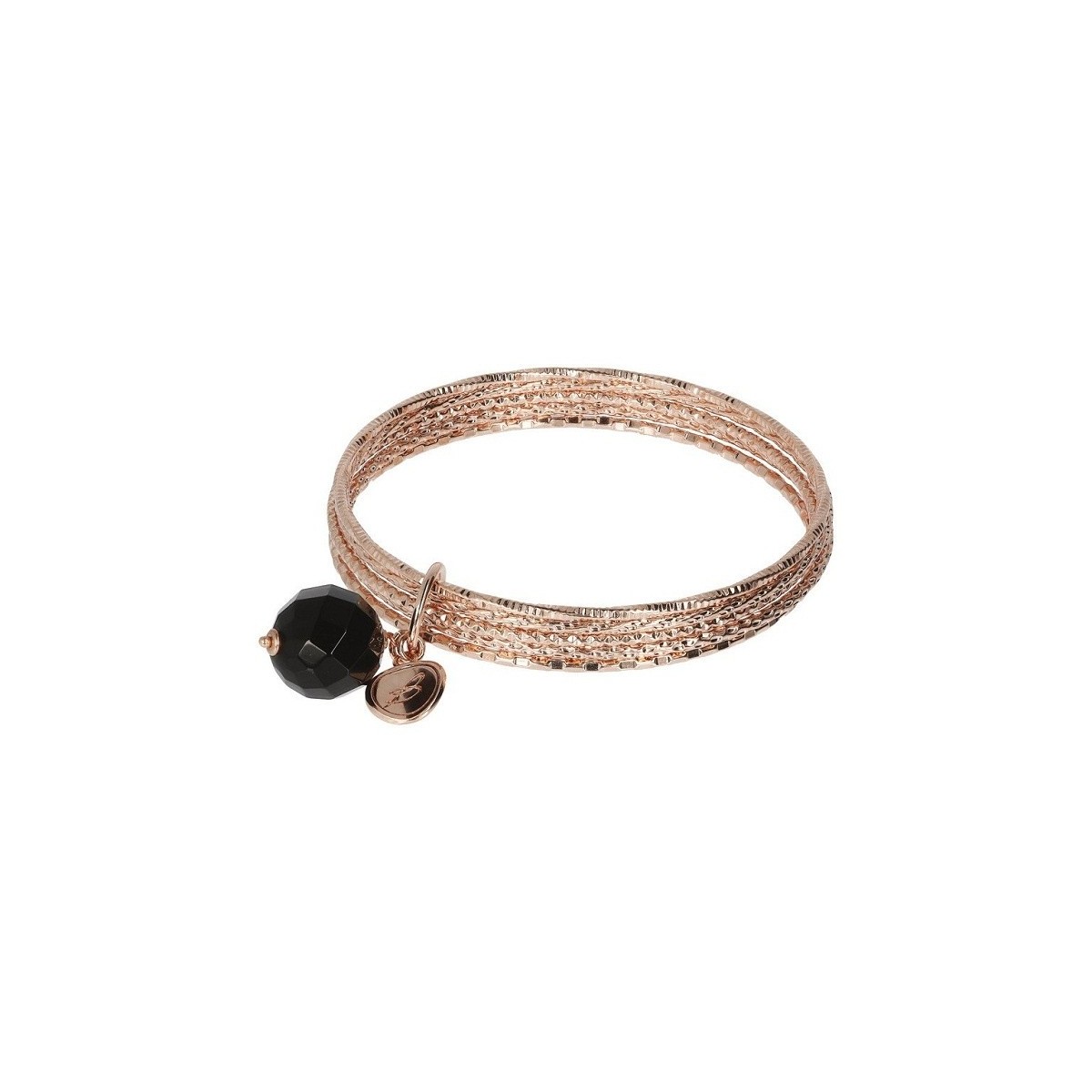 Bracciale rigido con onice nera pendente e base placcata oro rosa per uno stile allegro e divertente.