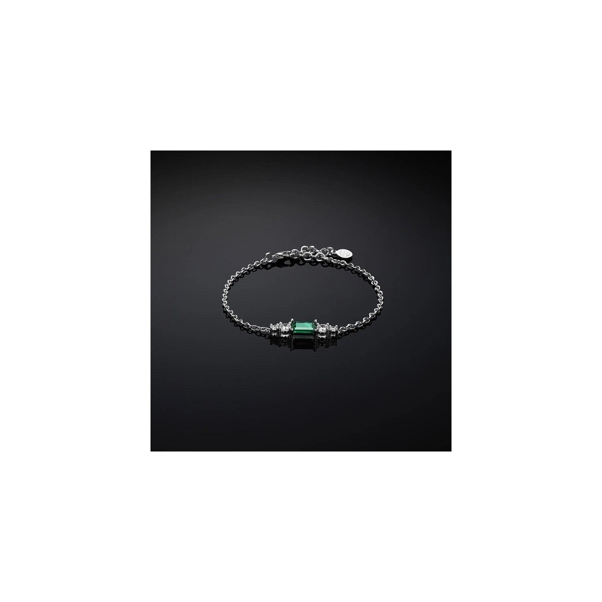 Bracciale firmato dalla nota influencer Chiara Ferragni appartenente alla collezione Emerald. Realizzato in acciaio rodiato, impreziosito da due luminosi zirconi bianchi e zircone verde taglio smeraldo.
