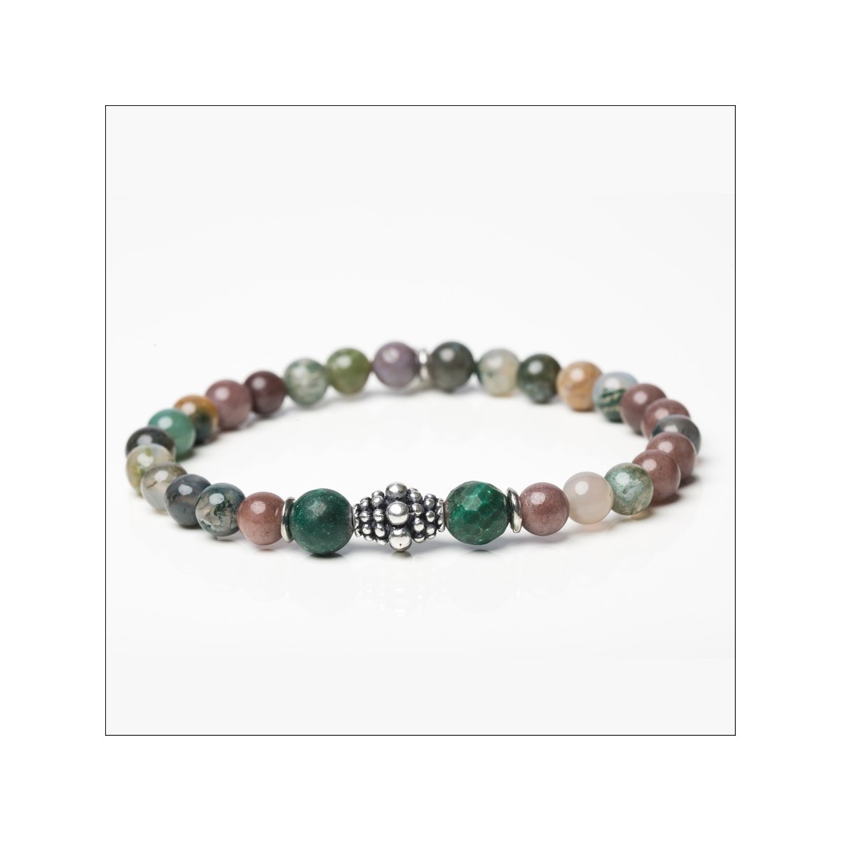 Bracciale elastico realizzato con pietre Agata . I dettagli sono realizzati in Argento 925 e metallo.