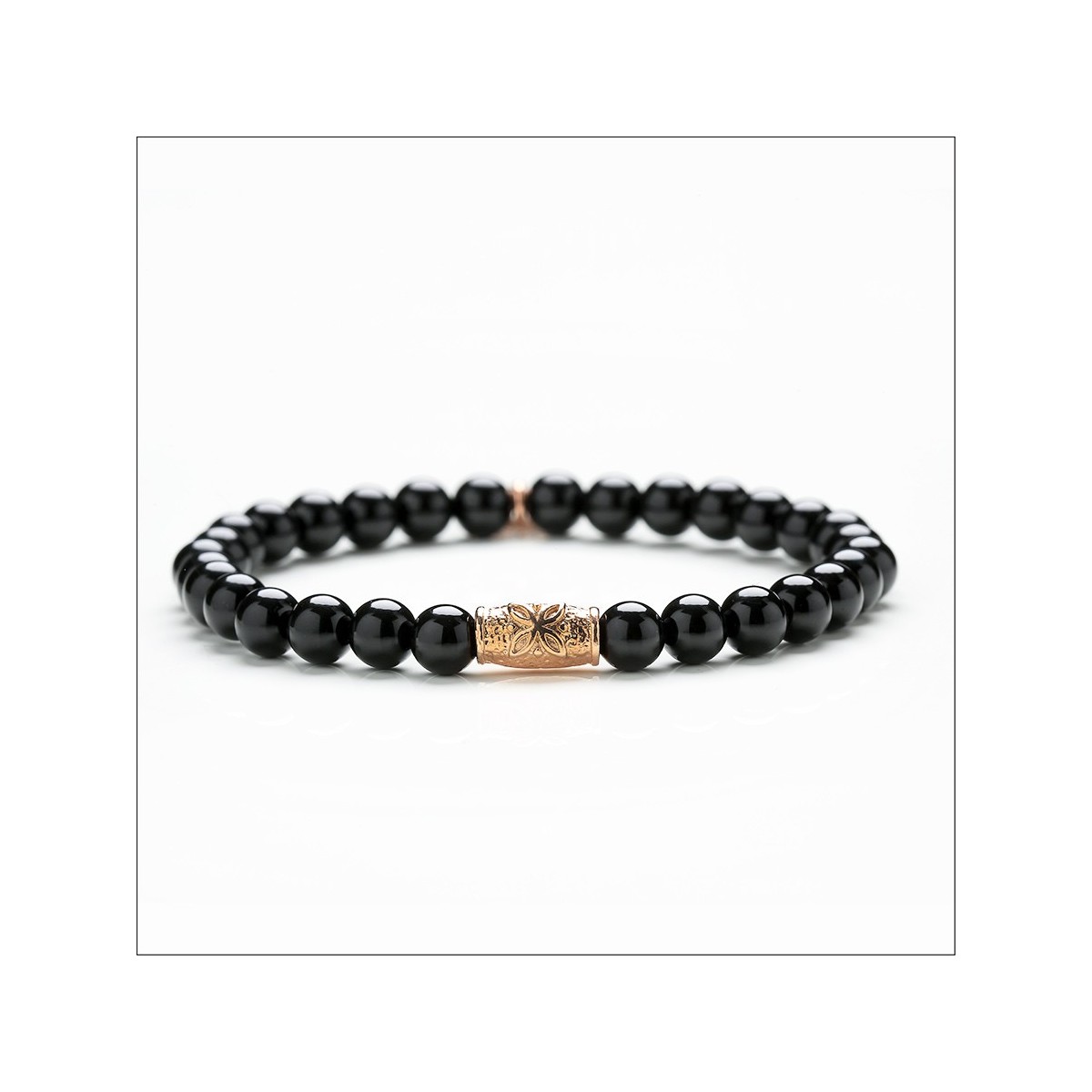 Bracciale elastico realizzato a mano con pietre Onice e dettagli realizzati in argento 925.