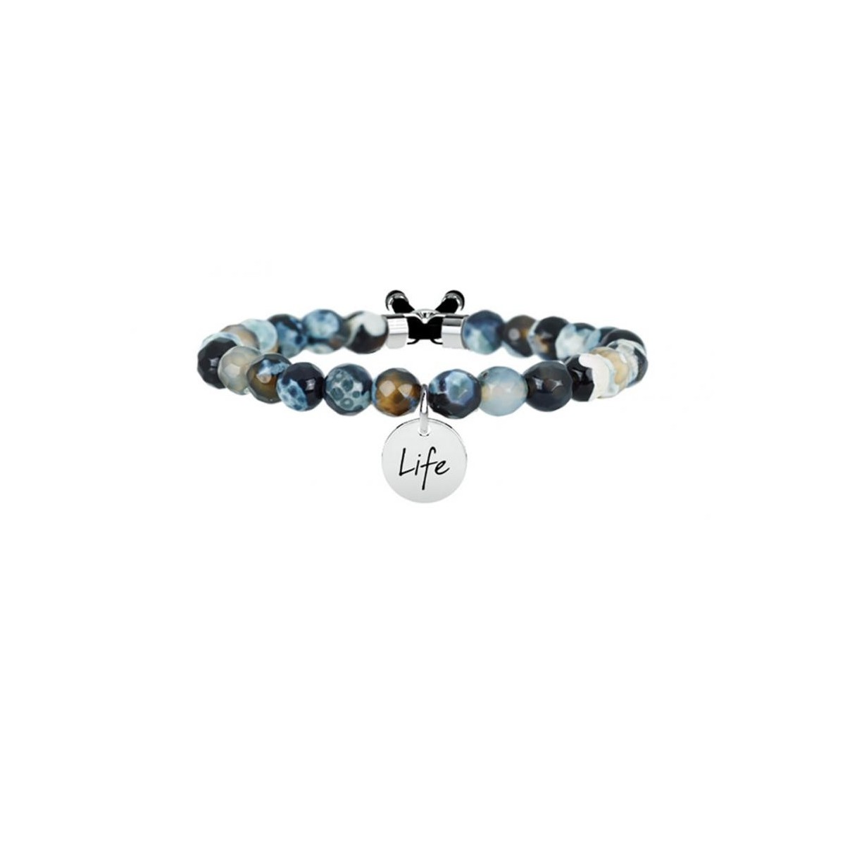 Bracciale con ciondolo in acciaio e pietre di agata nera elastico regolabile
