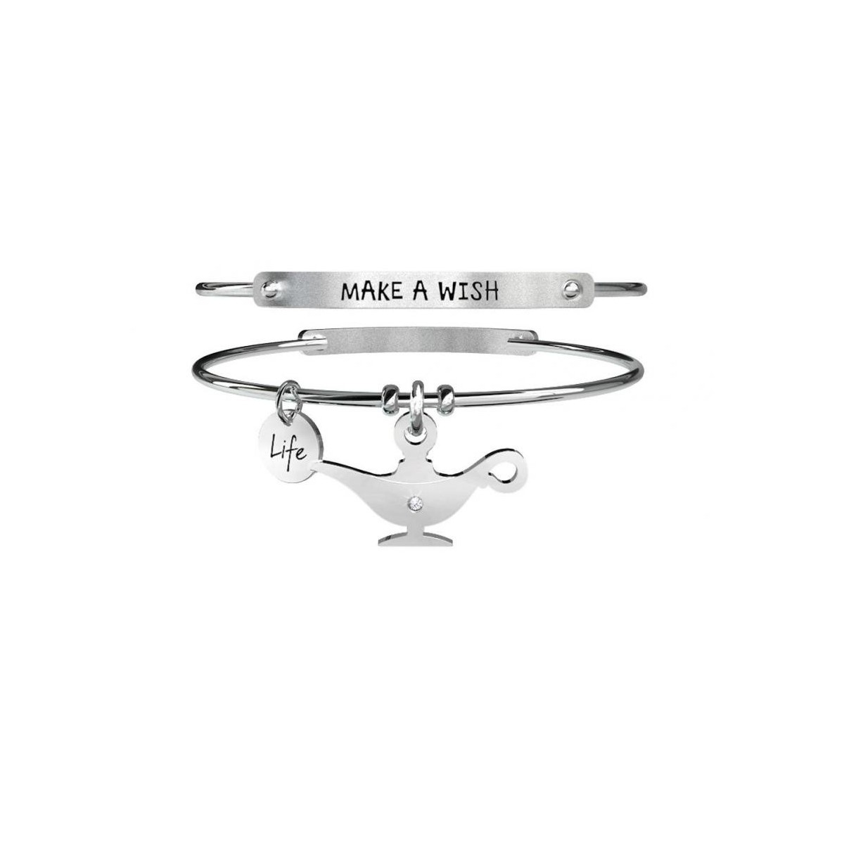 È arrivato il momento di ottenere ciò che insegui da sempre. Esprimi un desiderio, anzi 3, e i tuoi sogni diventeranno realtà. Ciondolo tondo con scritta "Life", ciondolo a forma di lampada di Aladino con punto luce e piastrina con scritta "Make a Wish"