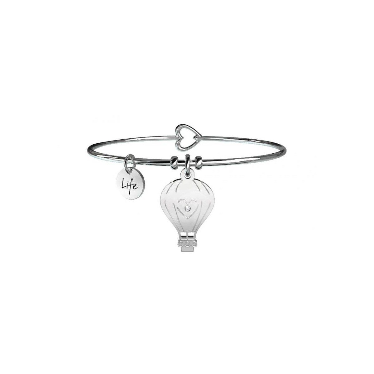 Fai le valigie e inizia a sognare, elevandoti fino alle stelle. Piano, senza fretta, senza limiti, senza confini. Più di arrivare, il bello è proprio viaggiare! Ciondolo tondo con scritta "Life" e ciondolo Mongolfiera con punto luce