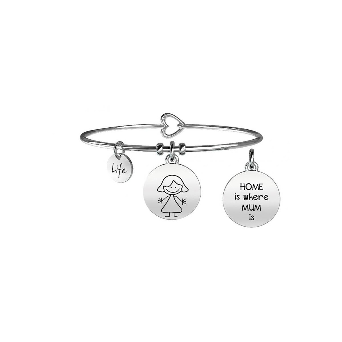 Bracciale in acciaio rigido con mdaglie pendenti casa è dove c'è mamma e chiusura a cuore