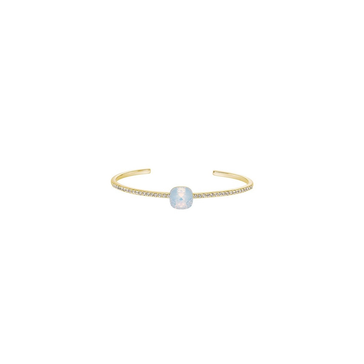 Un bracciale rigido, delicato e moderno, abbellito con un cristallo Swarovski® e delicati dettagli in pavé.