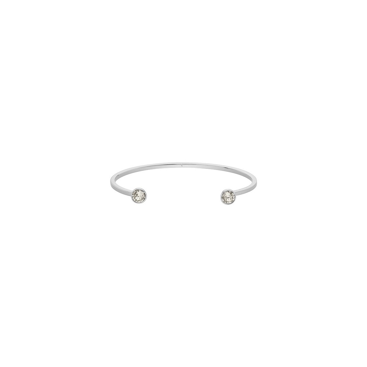 Un bracciale rigido, delicato e moderno, abbellito da due cristalli Swarovski® di grande stile.