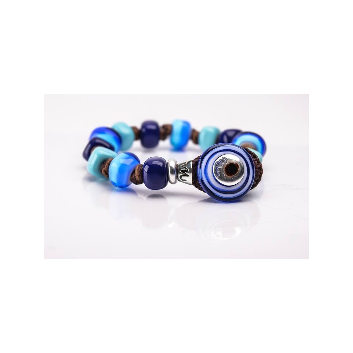 Il braccialetto Moi Poseidon è realizzato artigianalmente in vetro di murano e corda e si distingue per la particolare lavorazione delle singole perle .