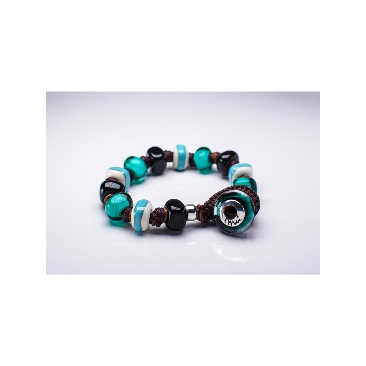 Il braccialetto Moi Zagara è realizzato artigianalmente in vetro di murano e corda e si distingue per la particolare lavorazione delle singole perle .