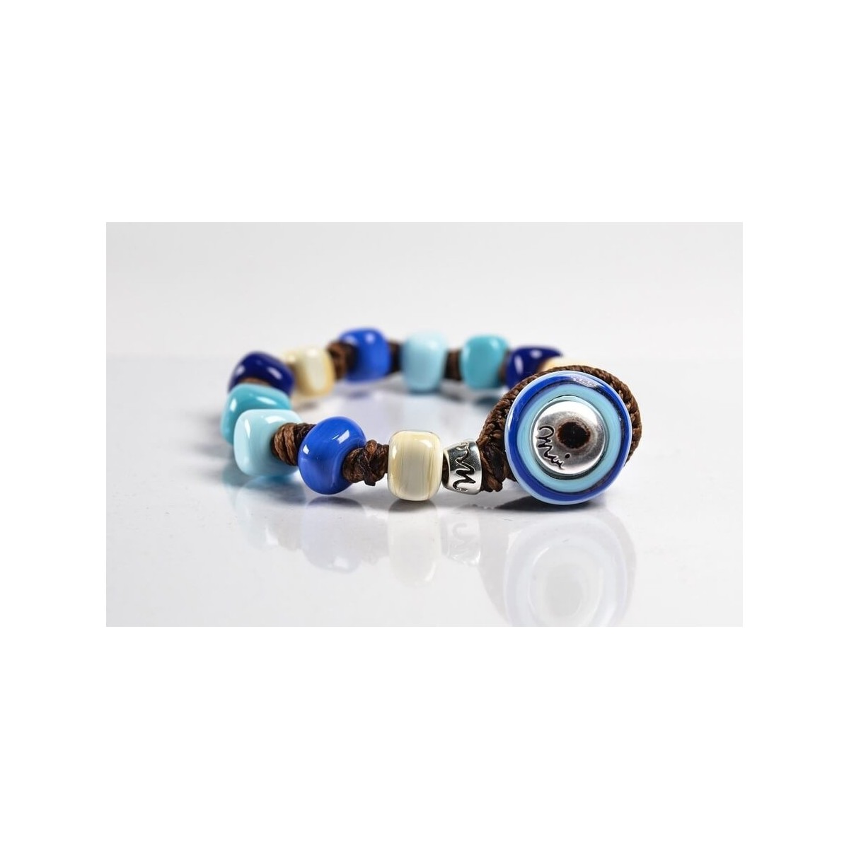 Il braccialetto Moi Borea è realizzato artigianalmente in vetro di murano e corda.