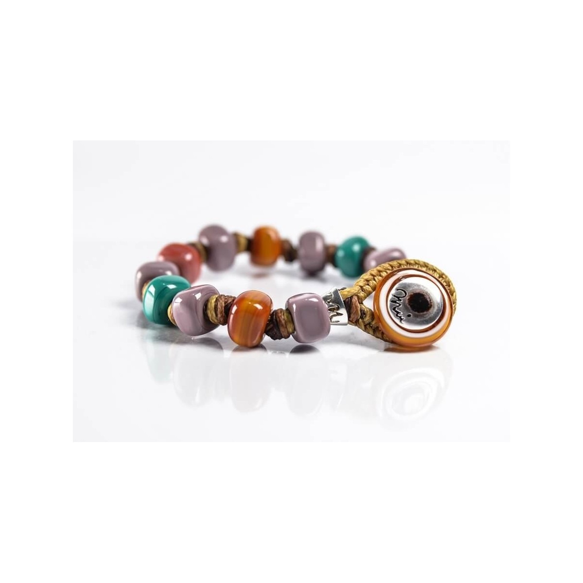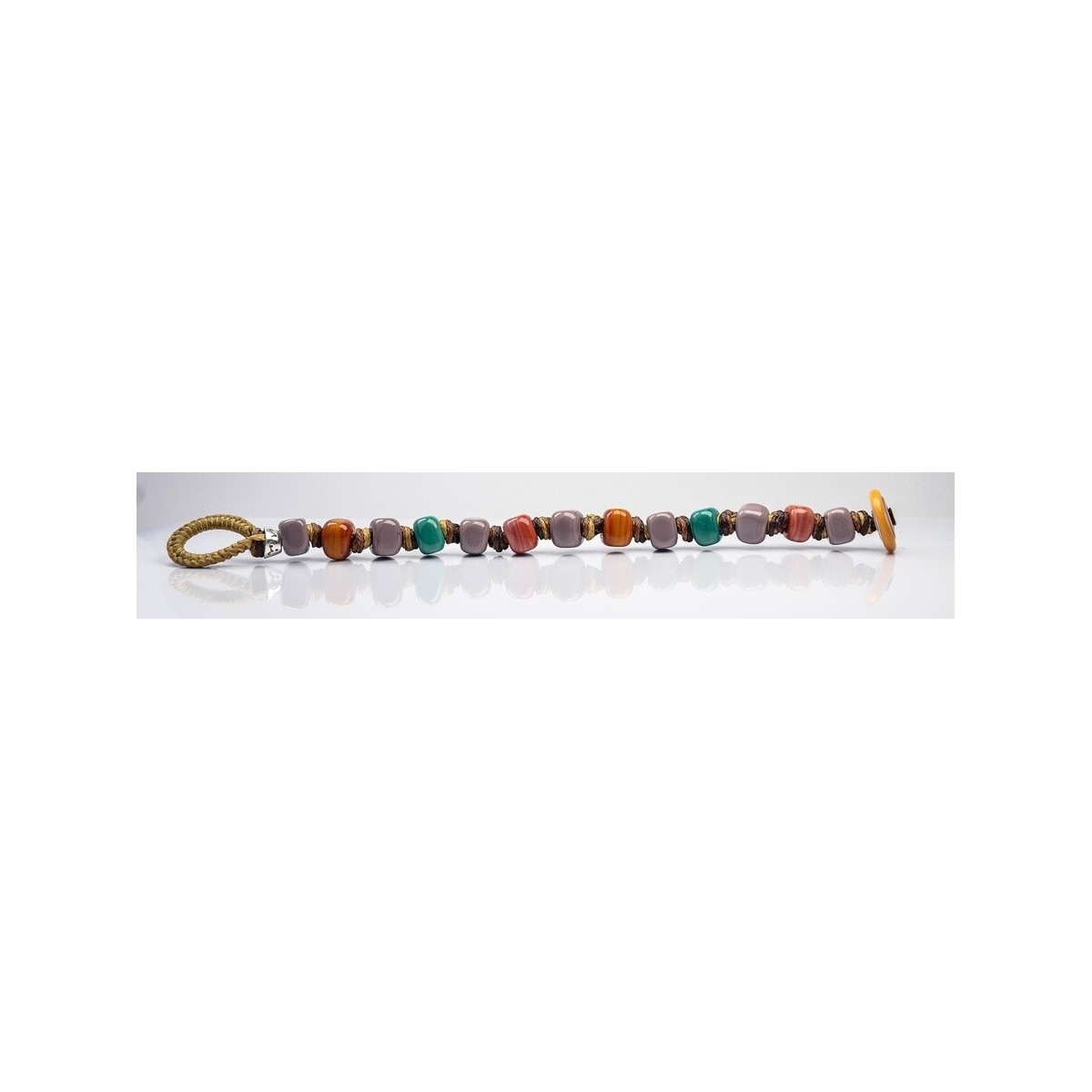 Il braccialetto Moi Picardia è realizzato artigianalmente in vetro di murano e corda.