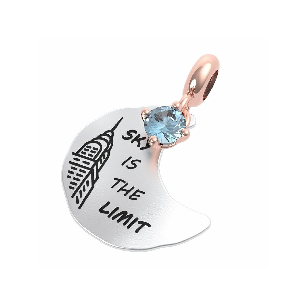 Rerum Gioielli pendente a forma di luna in argento 925 con anellino placcato oro rosa, compatibile per bracciale o collana componibile, collezione Carpe Diem