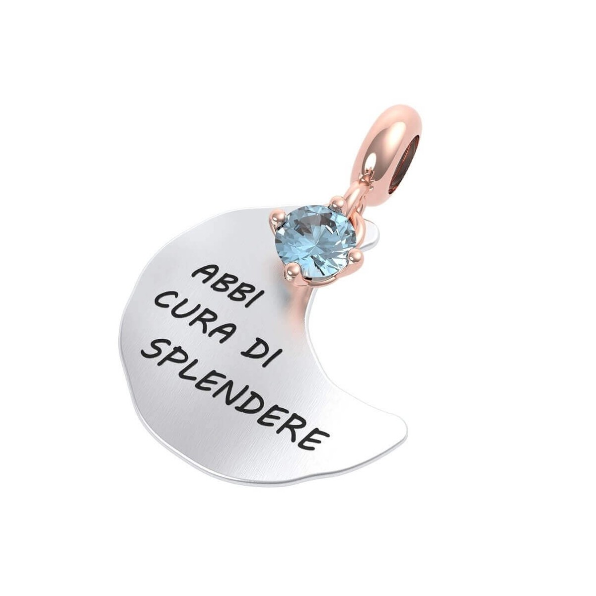 Rerum Gioielli pendente a forma di luna in argento 925 con anellino placcato oro rosa, compatibile per bracciale o collana componibile, collezione Carpe Diem