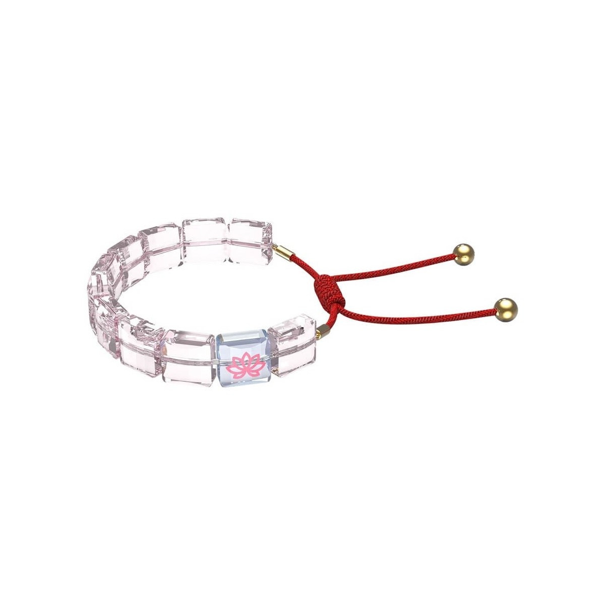 Questo bracciale è Realizzato con cristalli rosa taglio square e rifinito con un cordino regolabile in cotone cerato, ha un fiore di loto stampato, simbolo di amore infinito e buona fortuna.