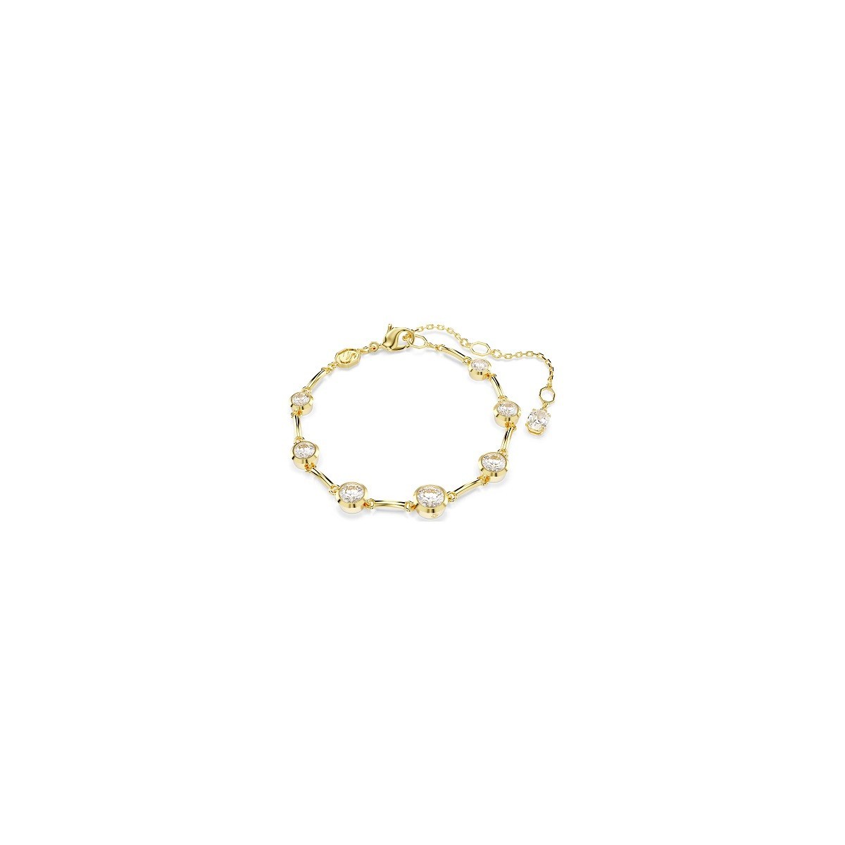 Bracciale donna, linea Imber, placcatura color oro e composto da cristalli bianchi taglio Round. Chiusura con moschettone.