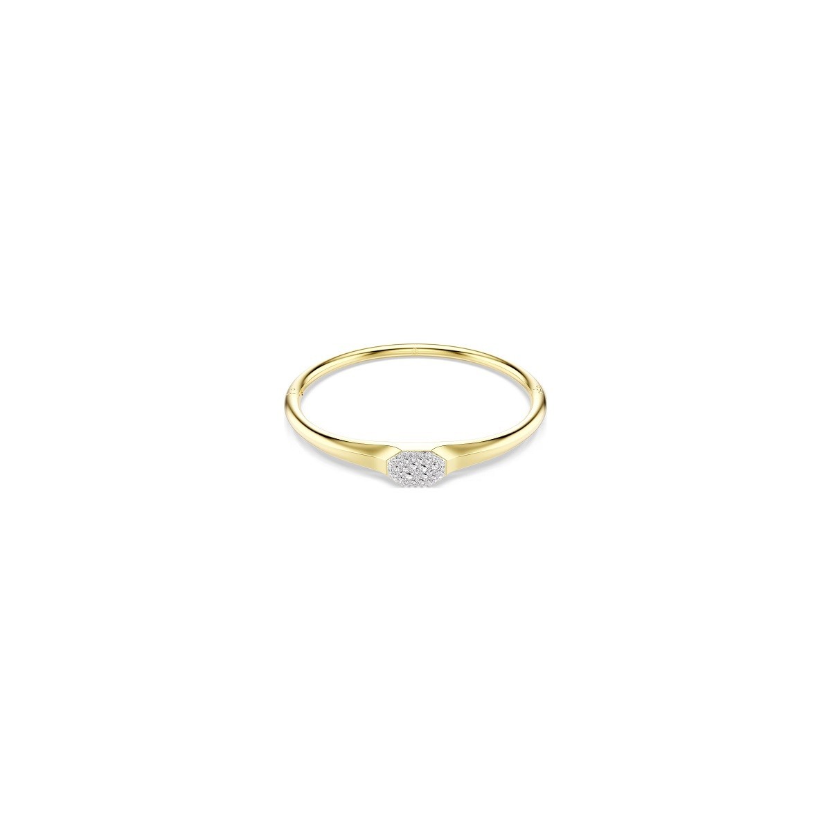 Bracciale rigido linea Dextera in metallo placcato color oro con pavè di cristalli bianchi. Chiusura a ribalta.
