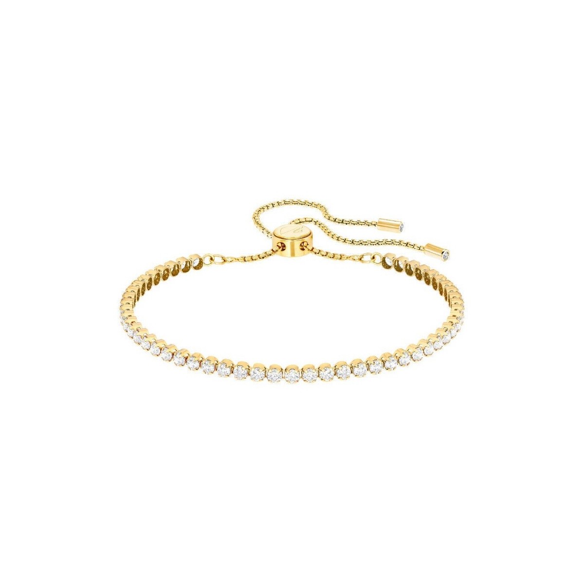 Il bracciale cupchain placcato oro che avvolge delicatamente il polso è completato da una innovativa chiusura a scorrimento a sfera, che ne garantisce una vestibilità sempre confortevole. Di giorno, abbinatelo ad un orologio Swarovski per una brillantezza controllata, oppure amplificatela per la sera aggiungendo altri gioielli da polso a contrasto. Lunghezza regolabile: 14 - 24 cm