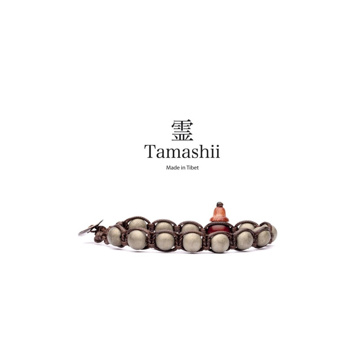 L'oro per i buddisti rappresenta il sole, la luce e la vita, ma anche la consapevolezza delle proprie origini e la terra di provenienza. Il Tamashii in pirite trasforma l'orgoglio in saggezza.