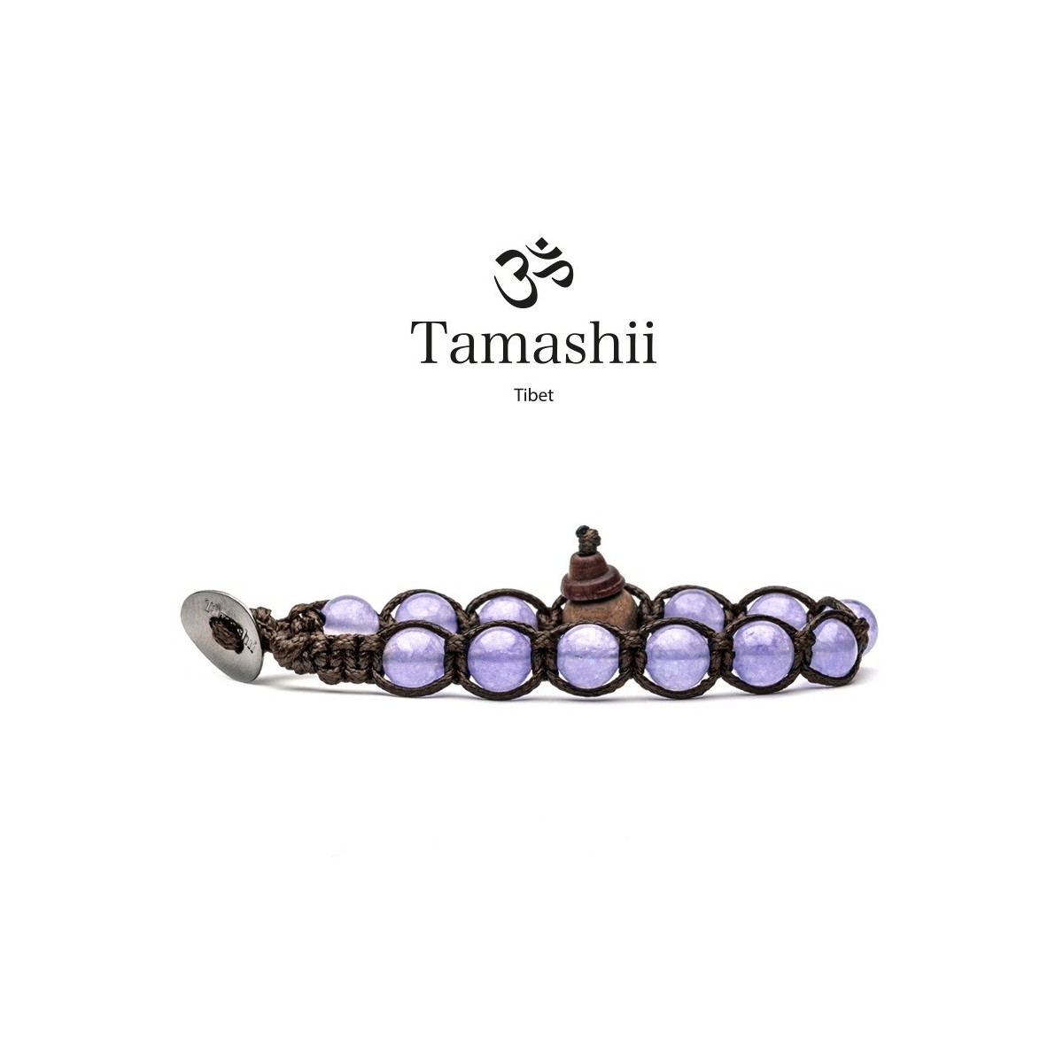 Bracciale a un giro unisex e taglia unica (è predisposto per adattarsi a qualsiasi diametro di polso) composto da pietre di Giada Lavanda unite da un cordino in cotone cerato. La giada ha un riconosciuto potere benefico su lombi e fianchi ed è spesso associata all'oro come simbolo di ricchezza; nella sua variante color lavanda porta sollievo alla mente e stabilisce una connessione con il mondo spirituale.