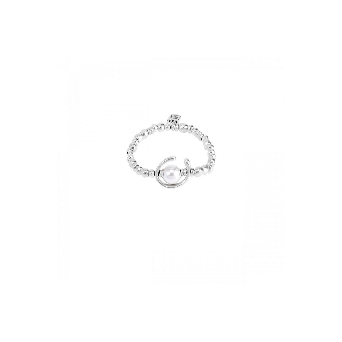 Bracciale unisex elastico composto da pepite in metallo rivestito argento e perla centrale