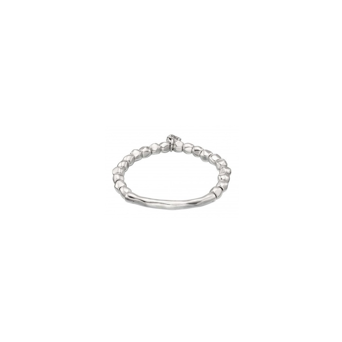 Braccialetto in rilievo a forma di tubo di metallo argentato, modello rigido.
