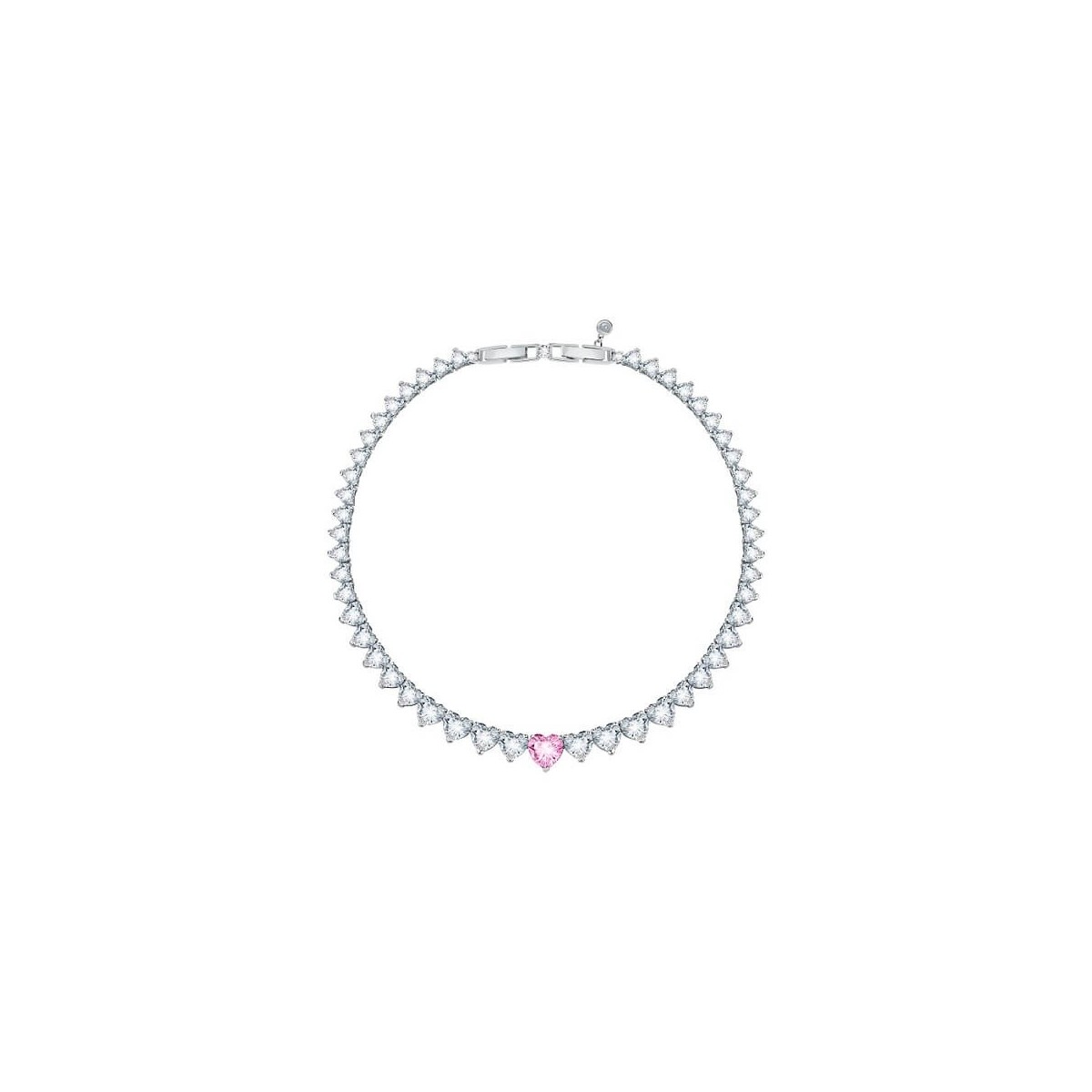 Girocollo firmato dalla nota influencer Chiara Ferragni appartenente alla collezione Infinity Love. Realizzato in acciaio rodiato, con zirconi bianchi taglio a cuore e con cuore rosa centrale.