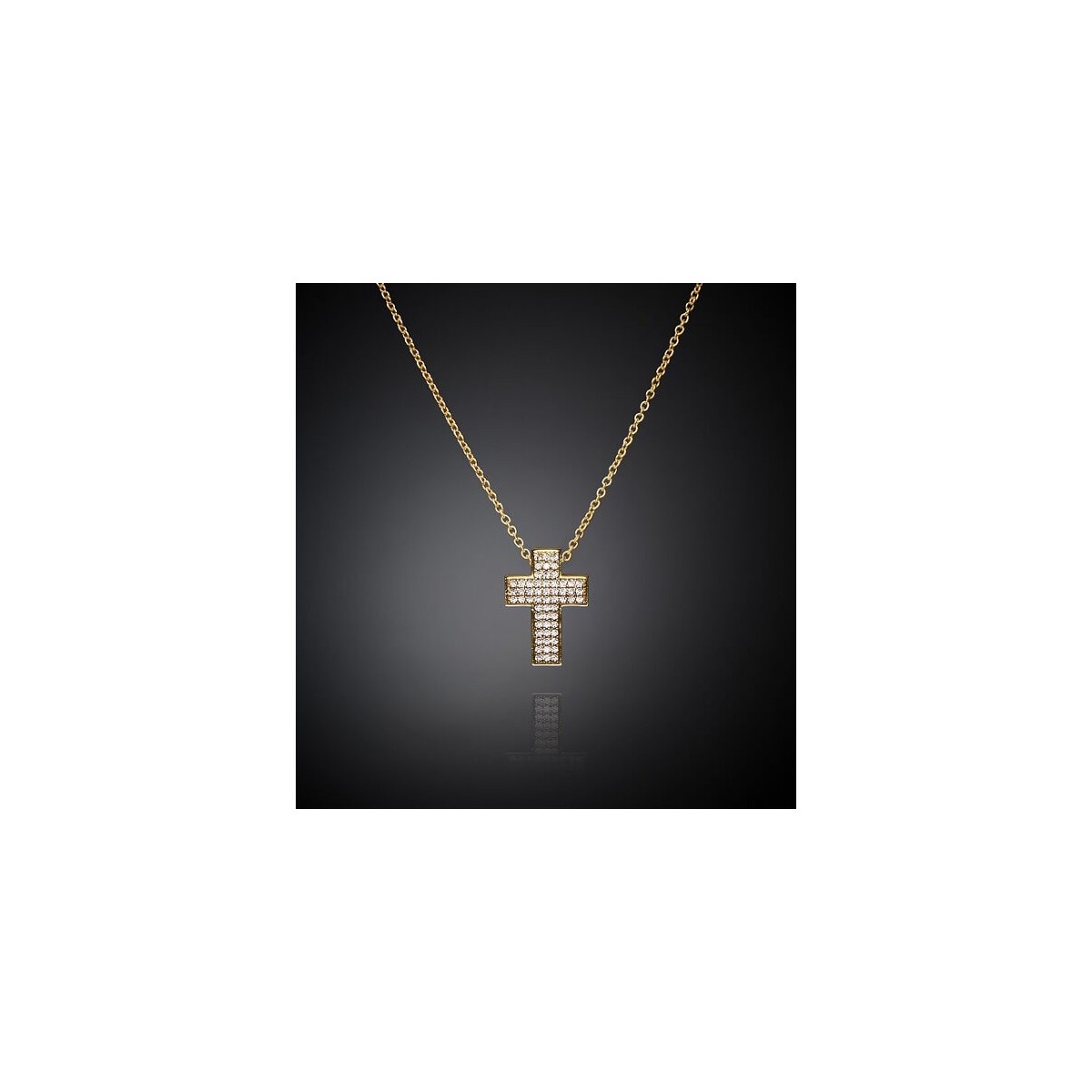 Collana della collezione Squared Cross in metallo placcato oro giallo con pendente a croce con pavé di zirconi.
