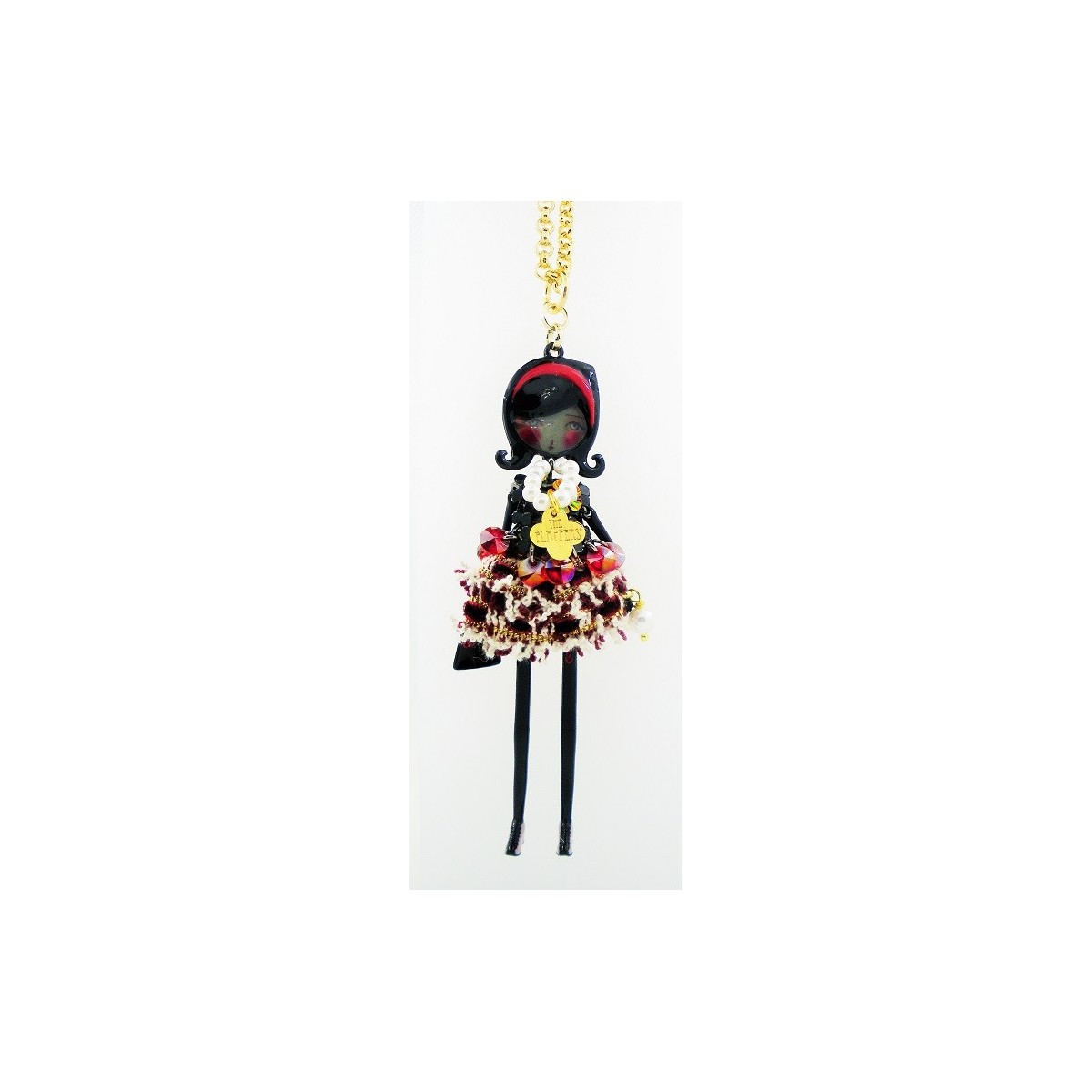Collana con pendente bambola Le Carose e catena regolabile in metallo dorato;