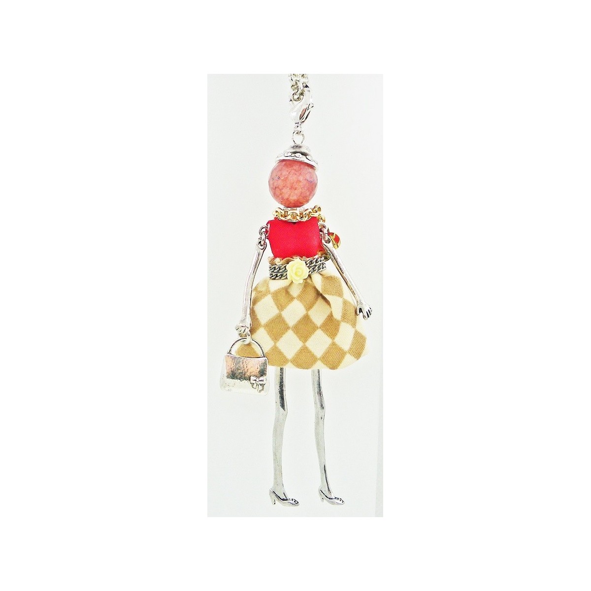 Collana con pendente bambola Le Carose e catena metallo argentato;