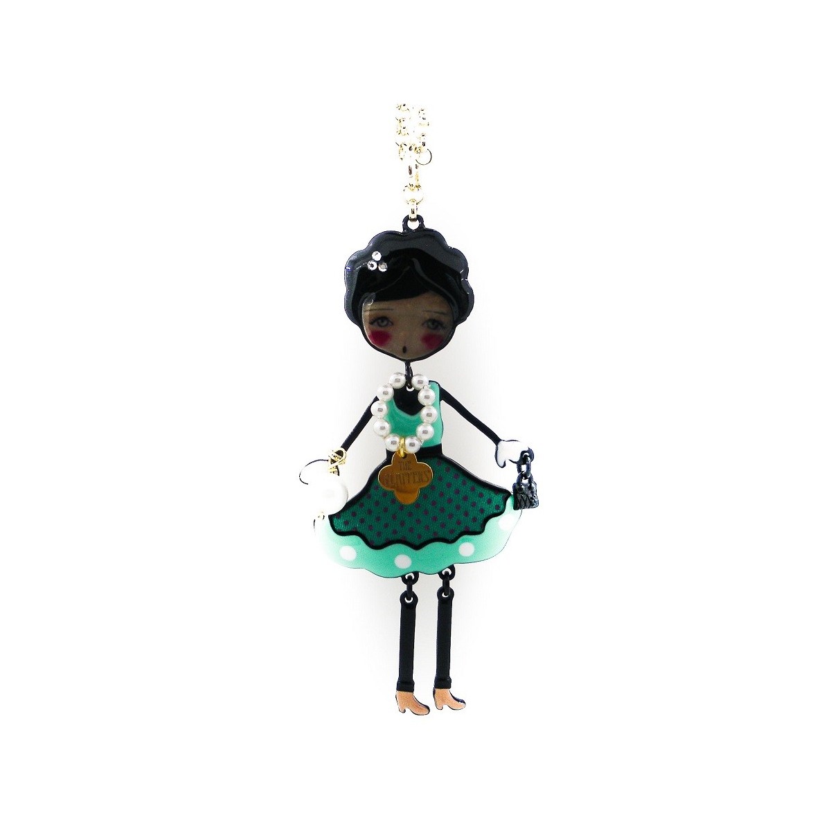 Collana con pendente bambola Le Carose flappers in pvd nero; catena metallo silver;