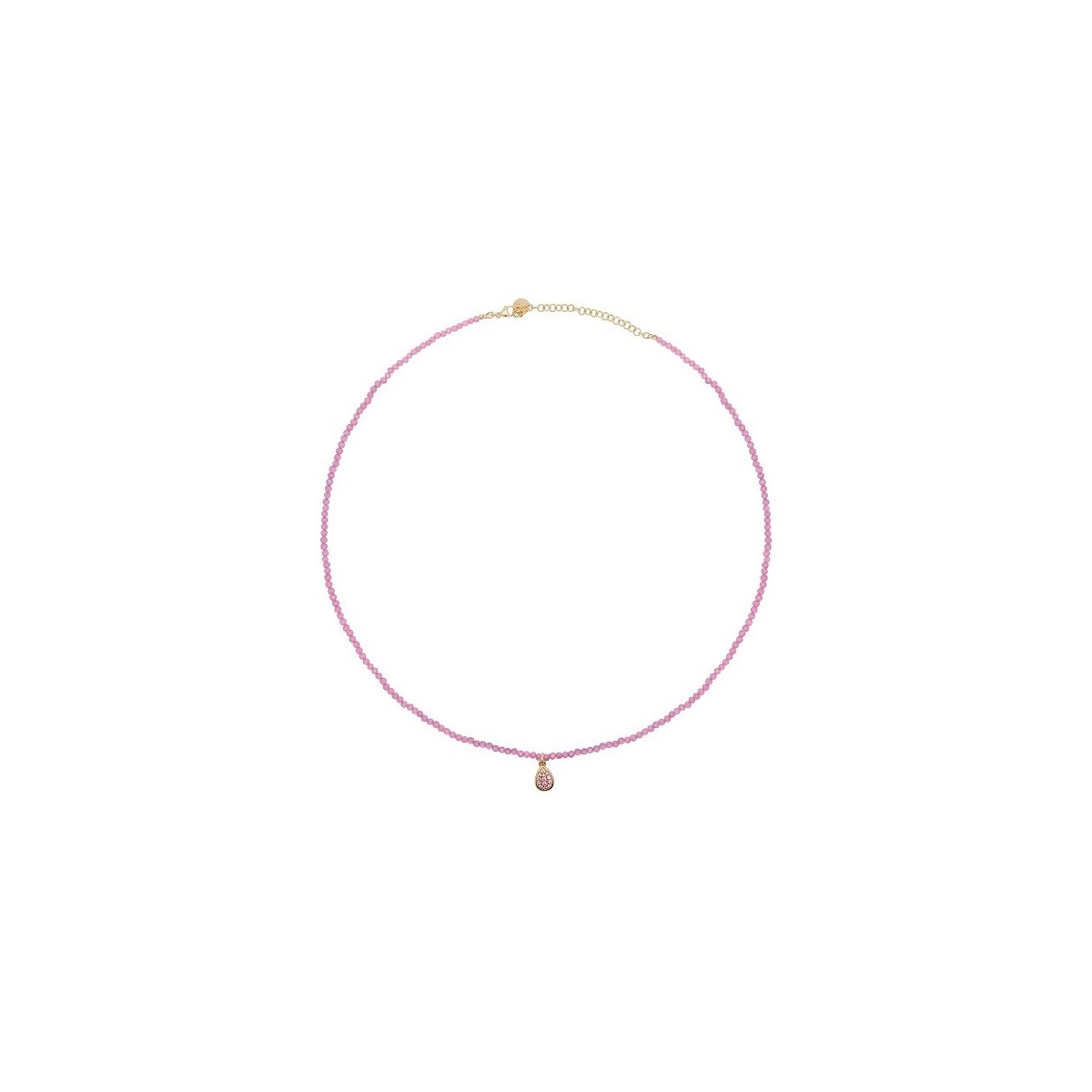 Girocollo in argento 925 placcato oro giallo, con filo di zirconi rosa e goccia pendente che rappresenta tenacia, trasparenza, approccio femminile alle sfide quotidiane.