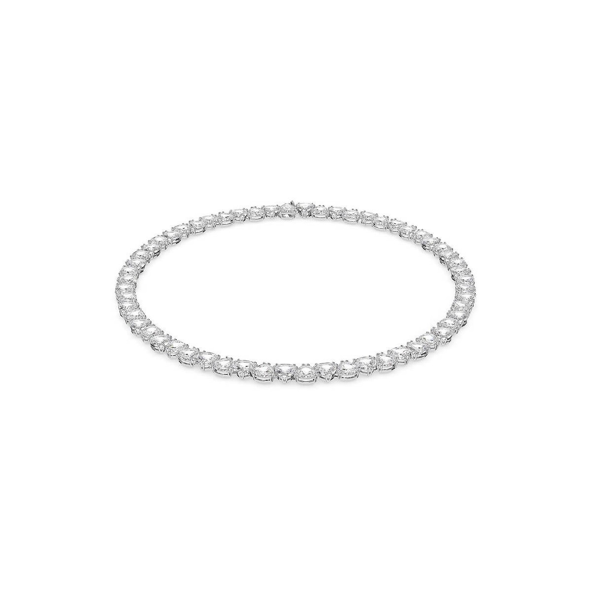 Collana rigida modello tennis da donna Swarovski, della collezione Millenia, realizzato con placcatura rodio. Il gioiello è impreziosito da piccoli cristalli bianchi taglio pear montati a griffe.