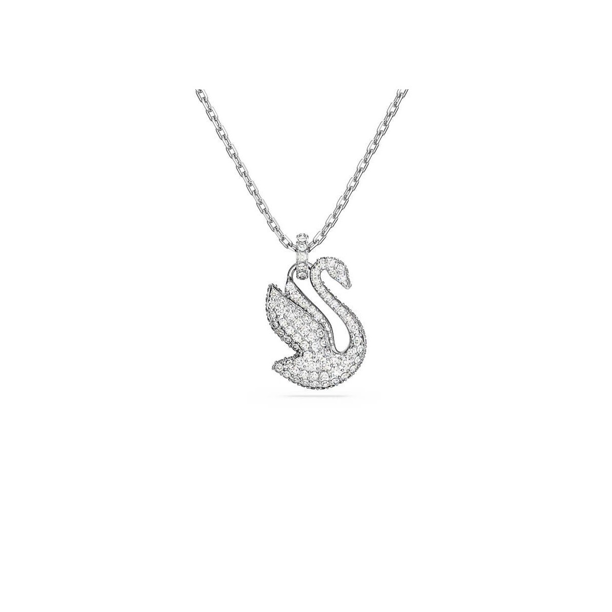 Collana girogola donna Swarovski, della collezione Iconic Swan, realizzata con pendente ispirato all' iconico cigno Swarovski, con elegante placcatura rodiata e pavé all-over in cristalli bianco brillante. Chiusura regolabile a moschettone.