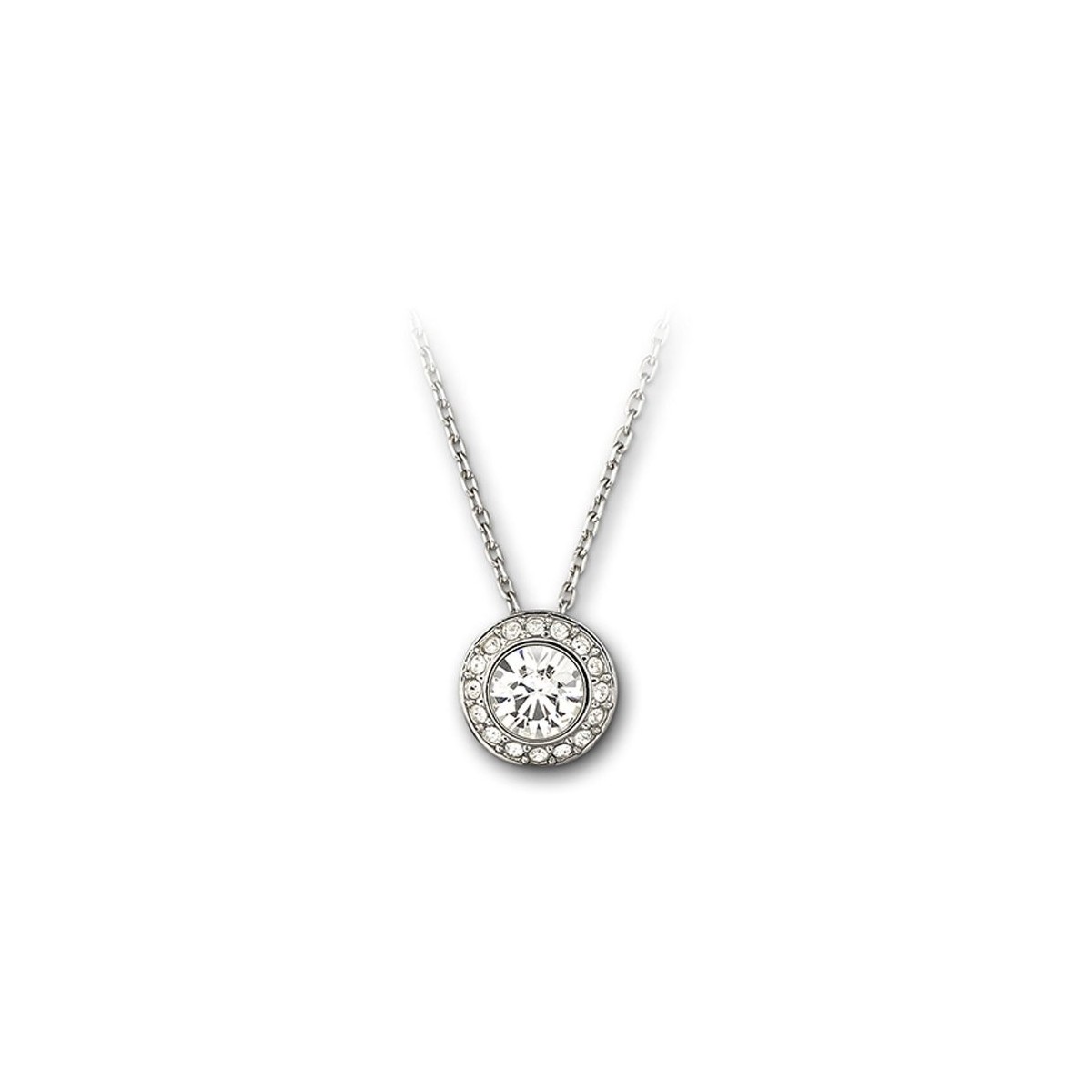 Un gioiello classico, elegante e raffinato può mettere in risalto qualsiasi mise. Il pendente Solitaire Swarovski dispone di un solitario cristallo circondato da un pavé circolare di cristalli. Il pendente è accompagnato da una raffinata collana rodiata.