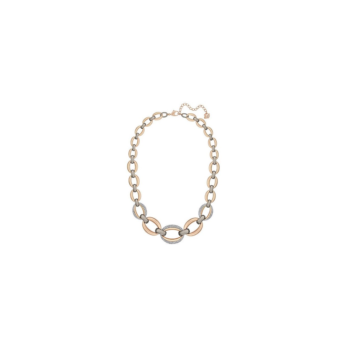 Collier formato da un'alternanza di anelli placcati oro rosa e rodiati con pavè di cristalli Swarovski