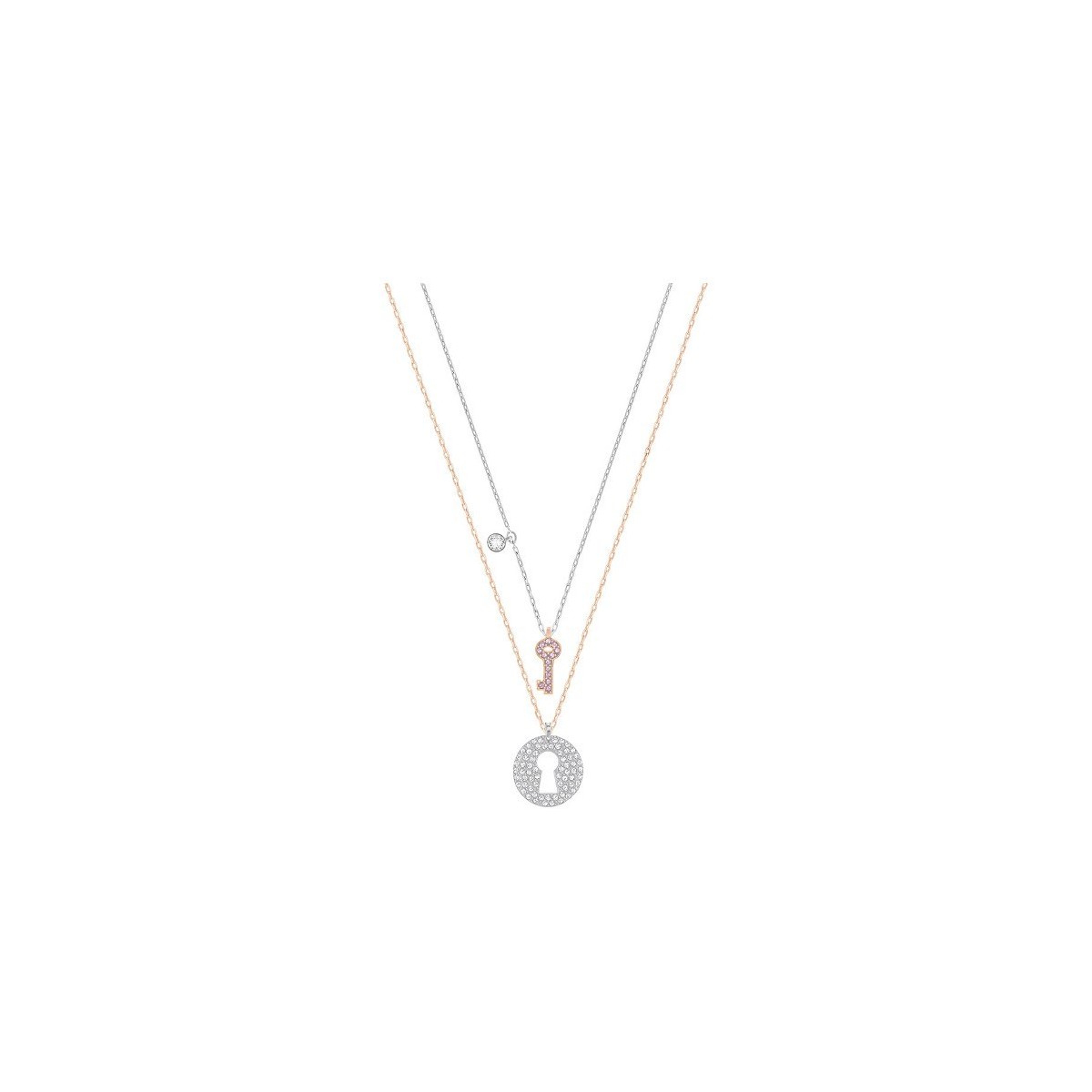 Set due collane con chiave pendente in pavè di cristalli rasa e bianco
