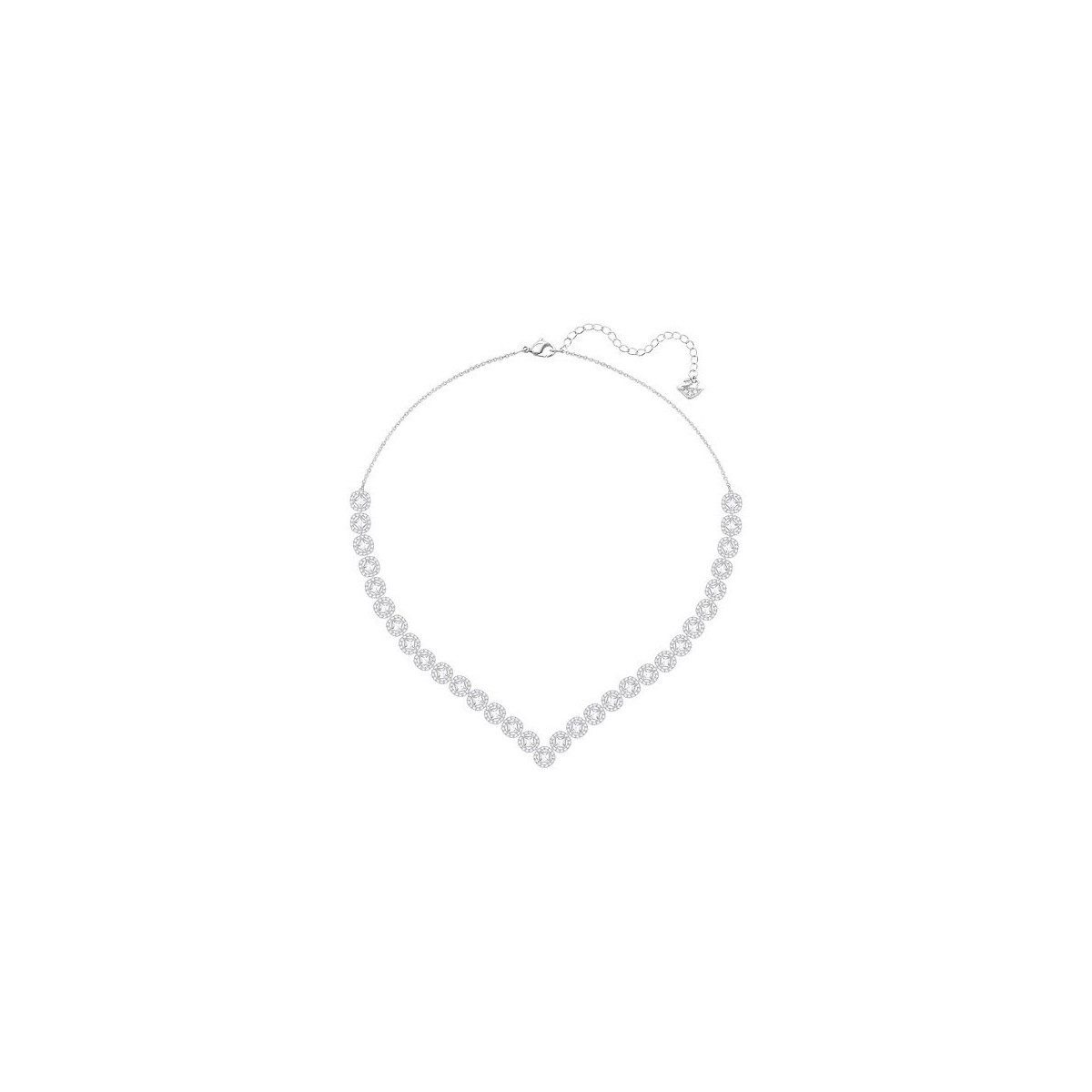 Collana placcata rodio con pavè di cristalli quadrati e allungamento a catena con logo Swarovski