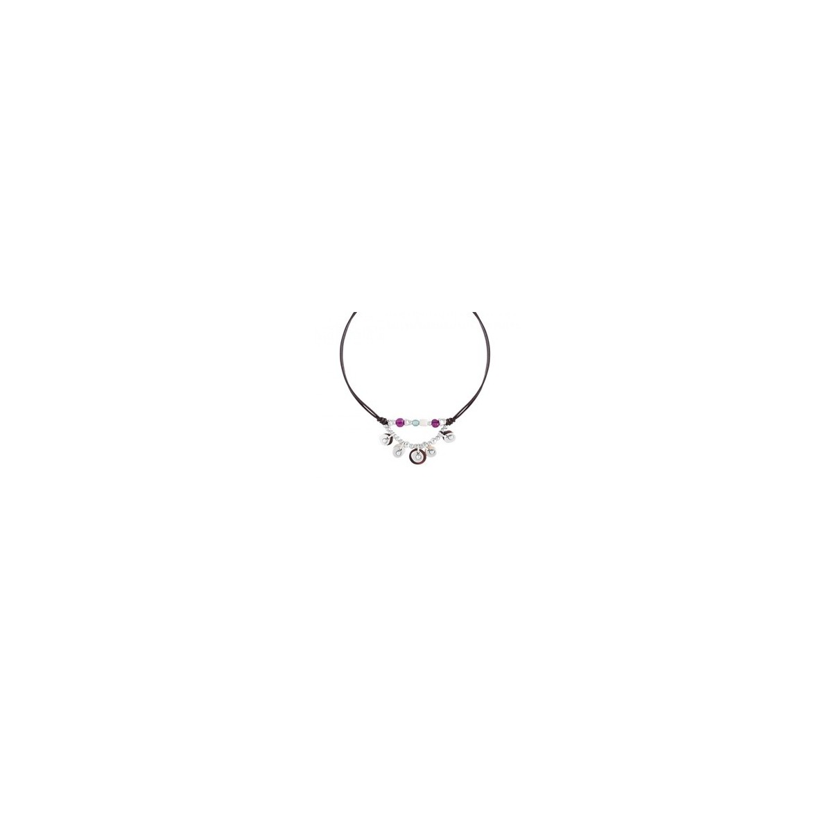 Collana donna in pelle e metallo placcato madreperla e vetro. Realizzato a mano in Spagna