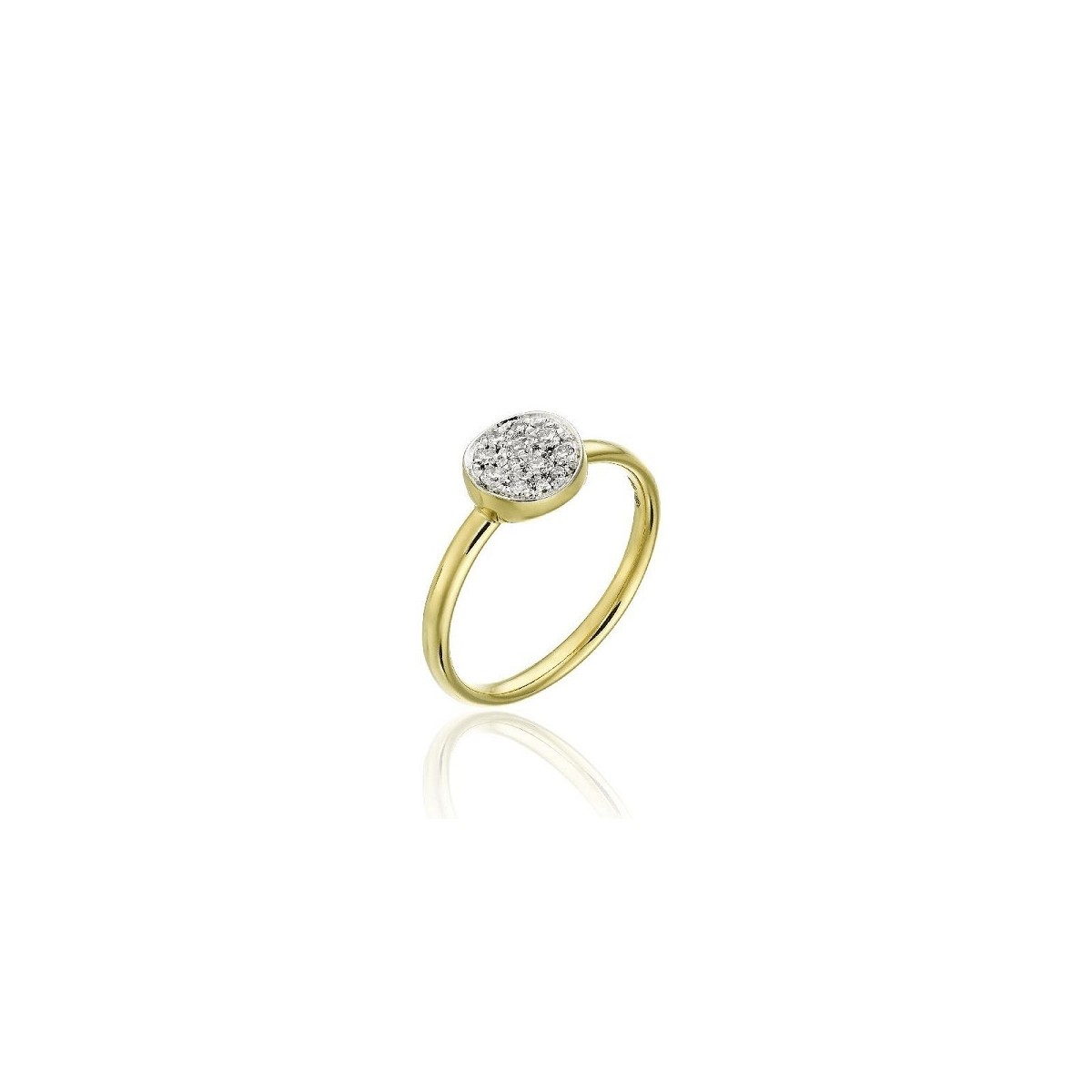 Anello donna Chimento solitario della collezione Armillas Glow, realizzato in oro giallo 18 kt lucido con tanti piccoli diamanti naturali che sprigionano una luce ipnotica.