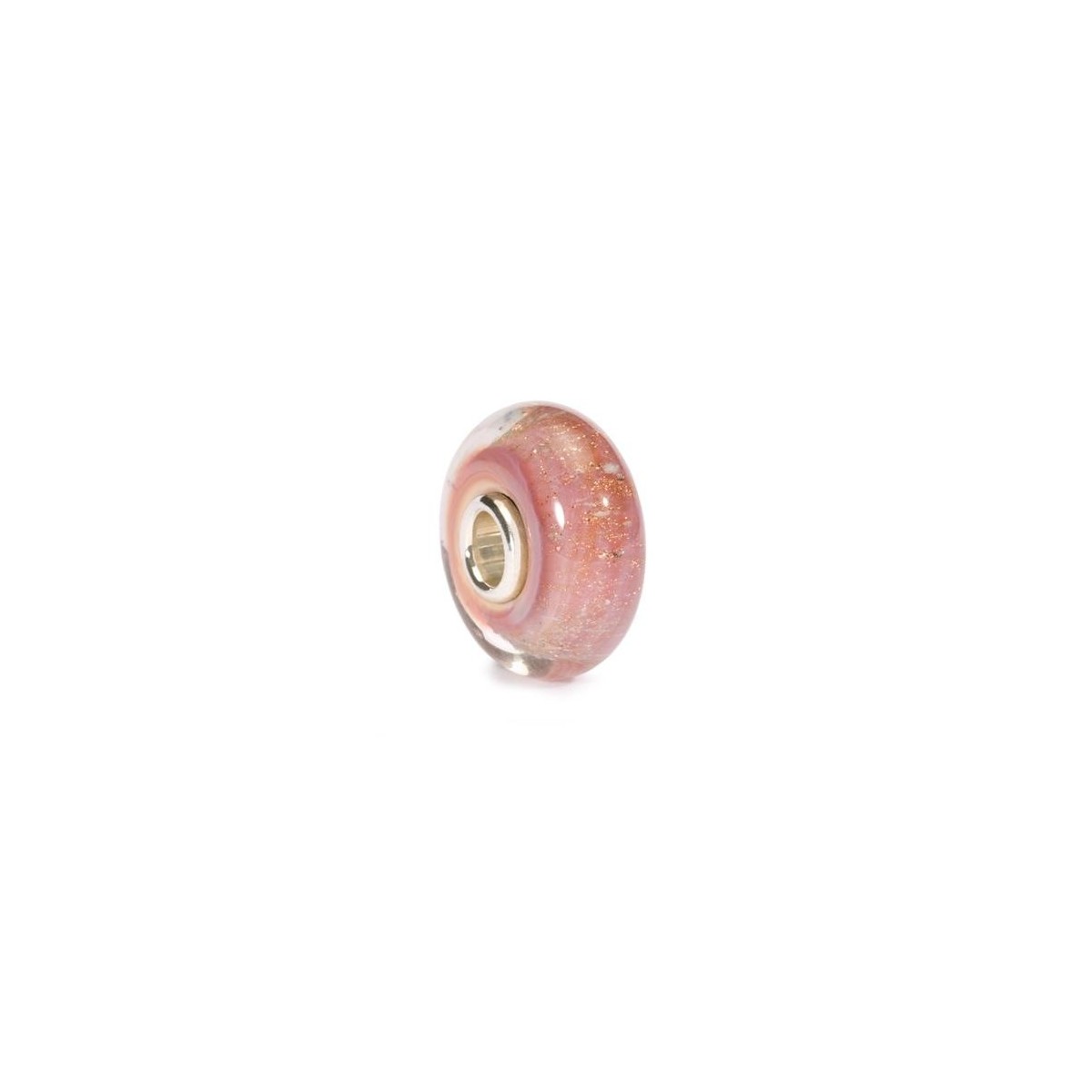 Beads in vetro Deserto Rosa con rivetto in argento 925 Trollbeads con significato "Un tranquillo tramonto nel deserto, il cielo rosato si riflette come milioni di piccoli soli nella sabbia brillante".