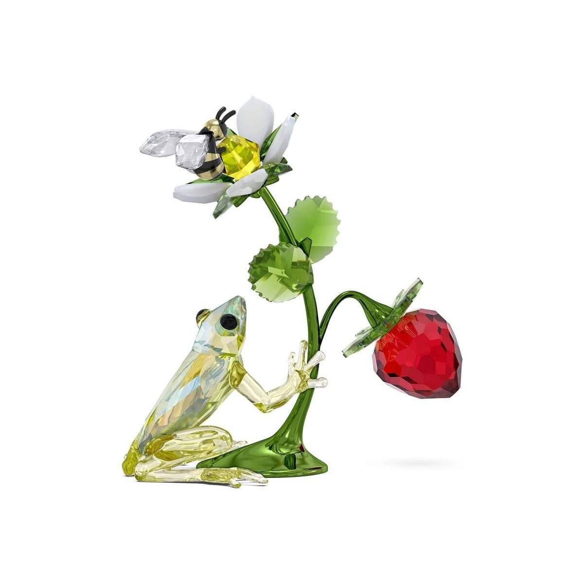 Ornamento Swarovski Idyllia con rana, ape e fragola in cristallo