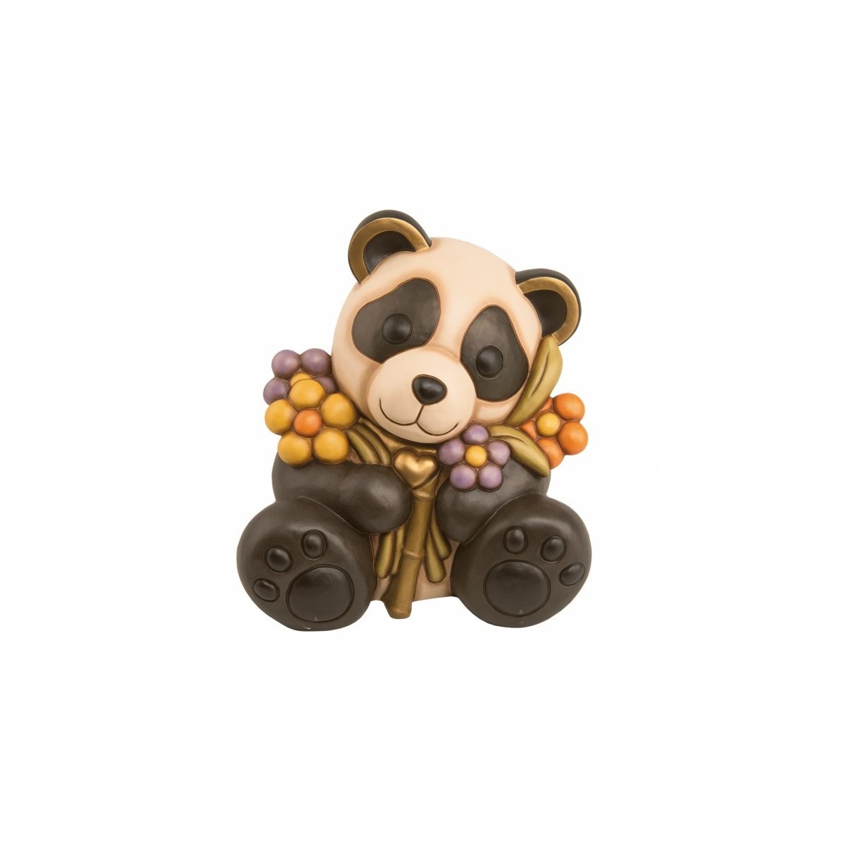 Panda maxi colore bianco e nero con fiori colorati, margherite arancioni, gialle e viola e foglie verdi.