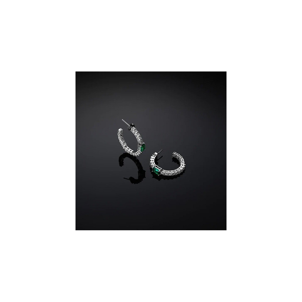 Orecchini a cerchio della collezione Emerald con zirconi bianchi e zircone verde centrale