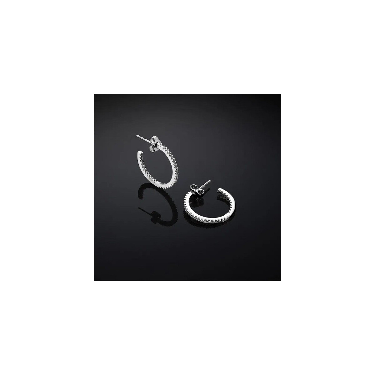 Orecchini a cerchio della collezione Silver in argento 925 con zirconi. Chiusura a farfallina.