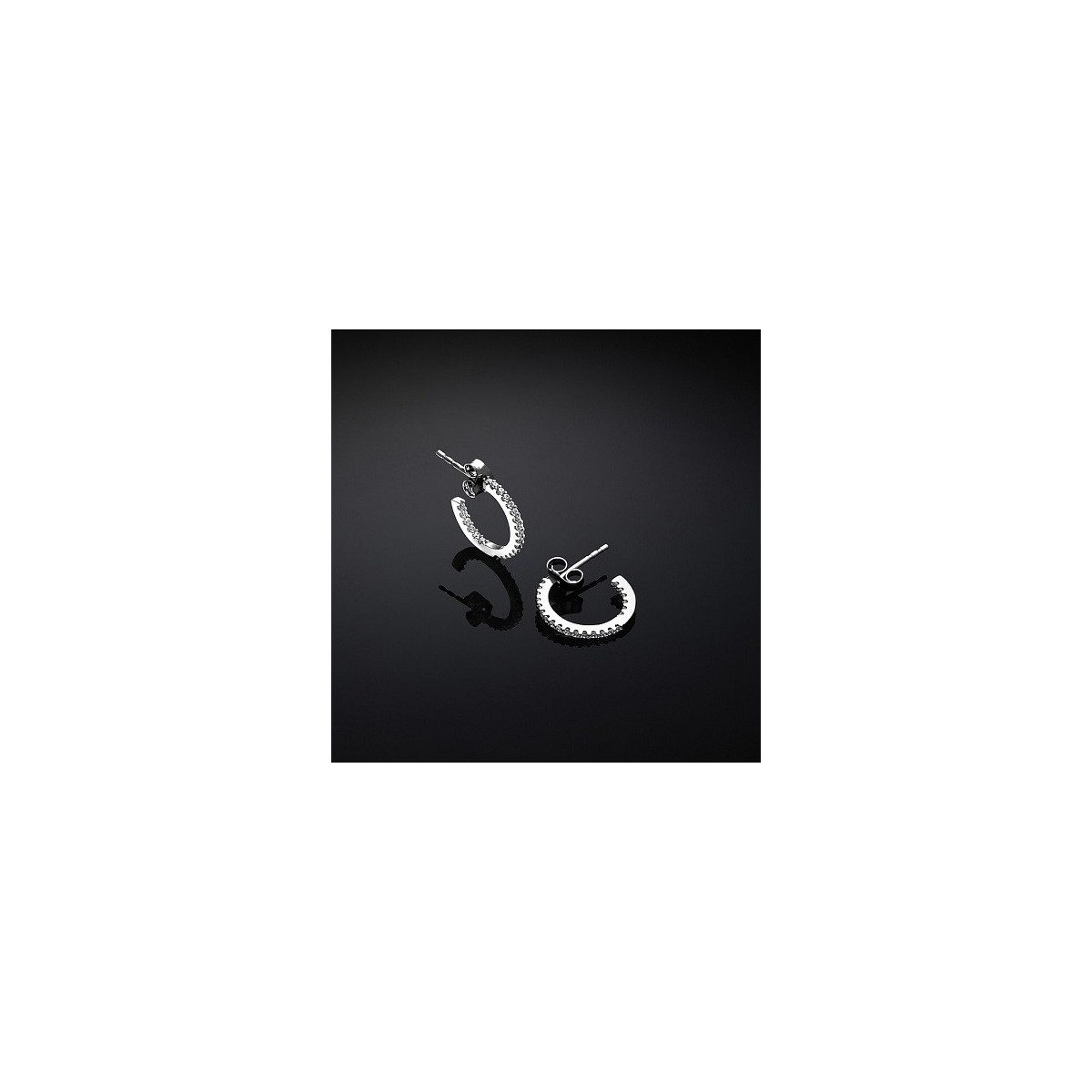 Orecchini a cerchio piccoli della collezione Silver in argento 925 con zirconi. Chiusura a farfallina.