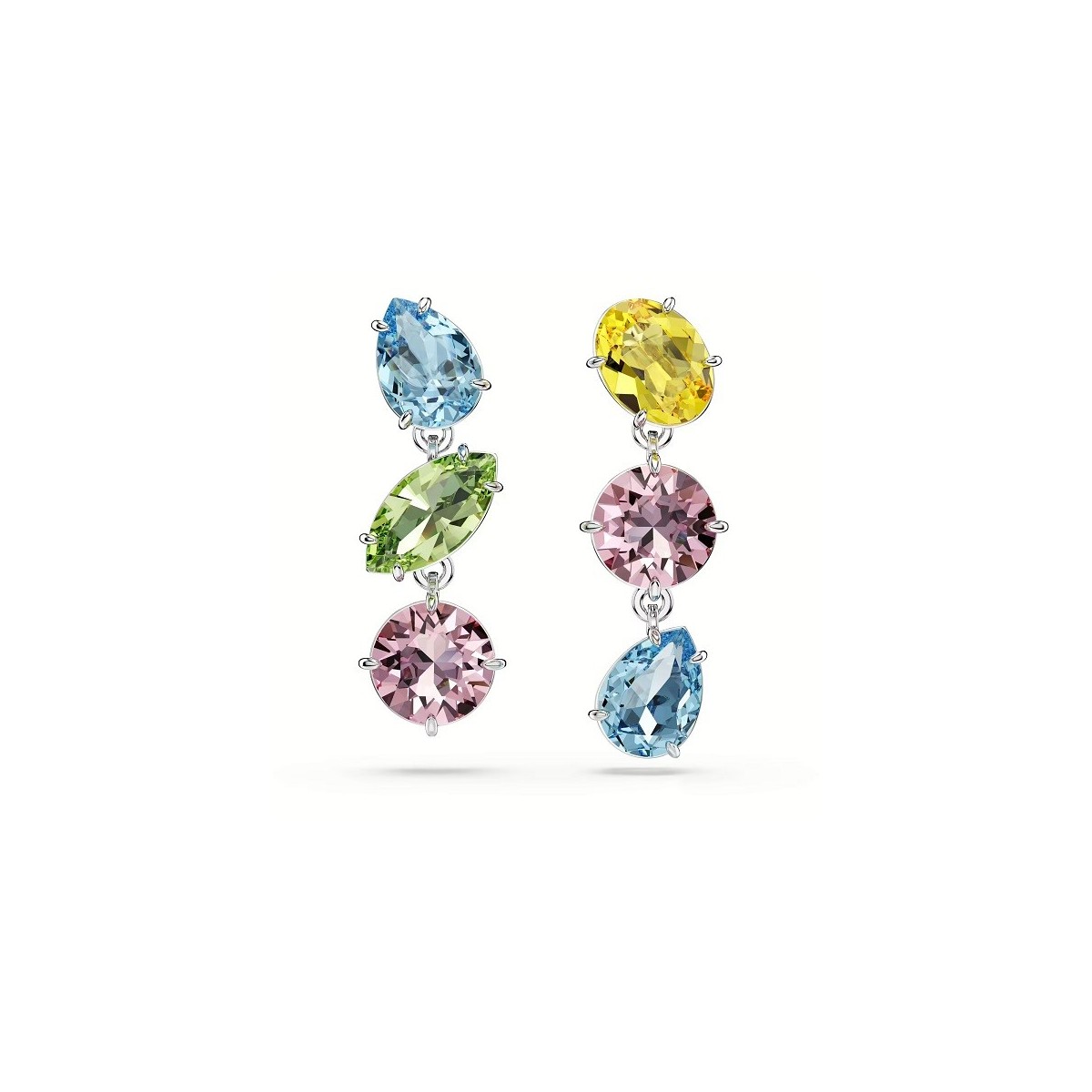 Orecchini pendenti, taglio misto, della collezione Gema, da donna Swarovski, esaltano l'interazione tra geometria e luce. Gli orecchini sono realizzati con placcatura rodio e presentano cristalli di varie forme e tonalità.