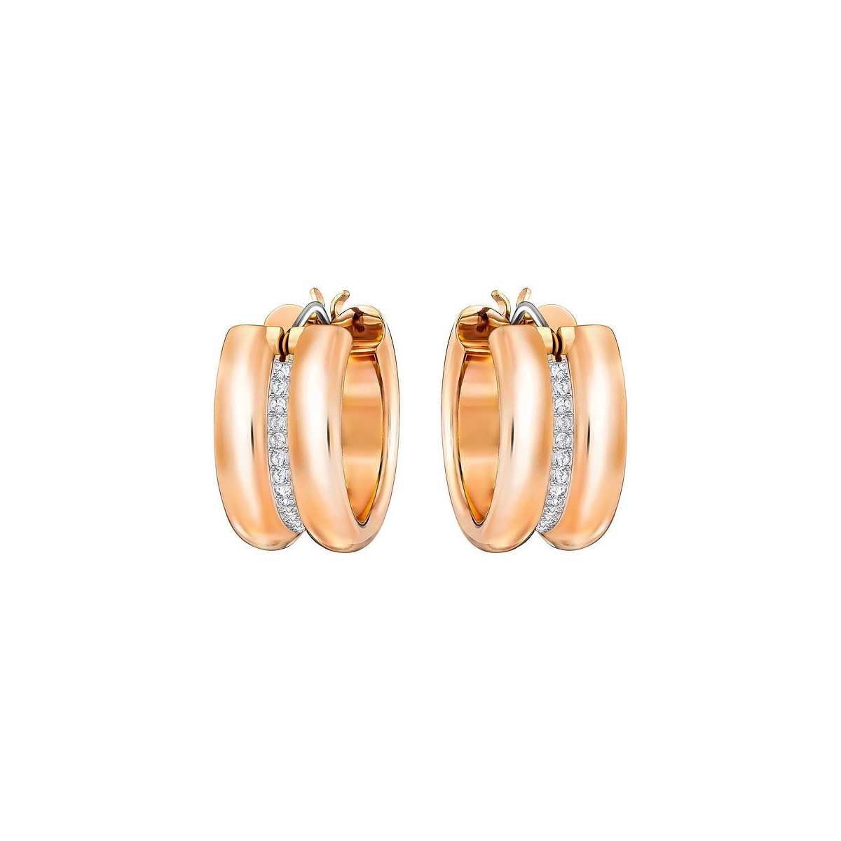 Orecchini cerchi placcato oro rosa effetto spirale con pavè di cristalli Swarovski bianchi centrali