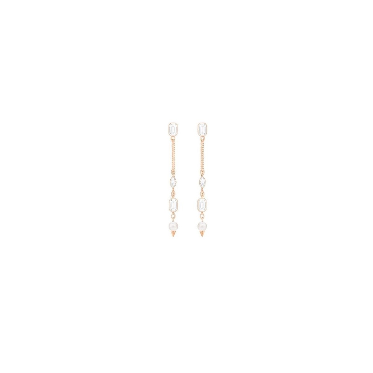 Orecchini componibili in due versioni, a lobo o pendenti, in metallo placcato oro rosa e cristalli e perle